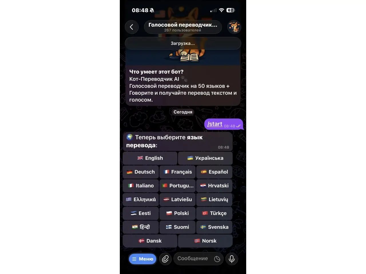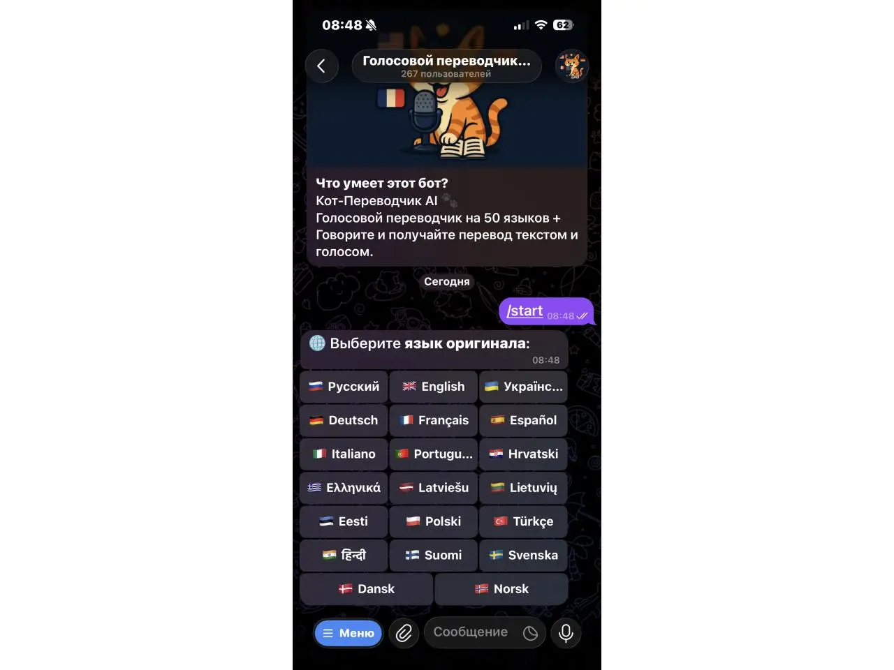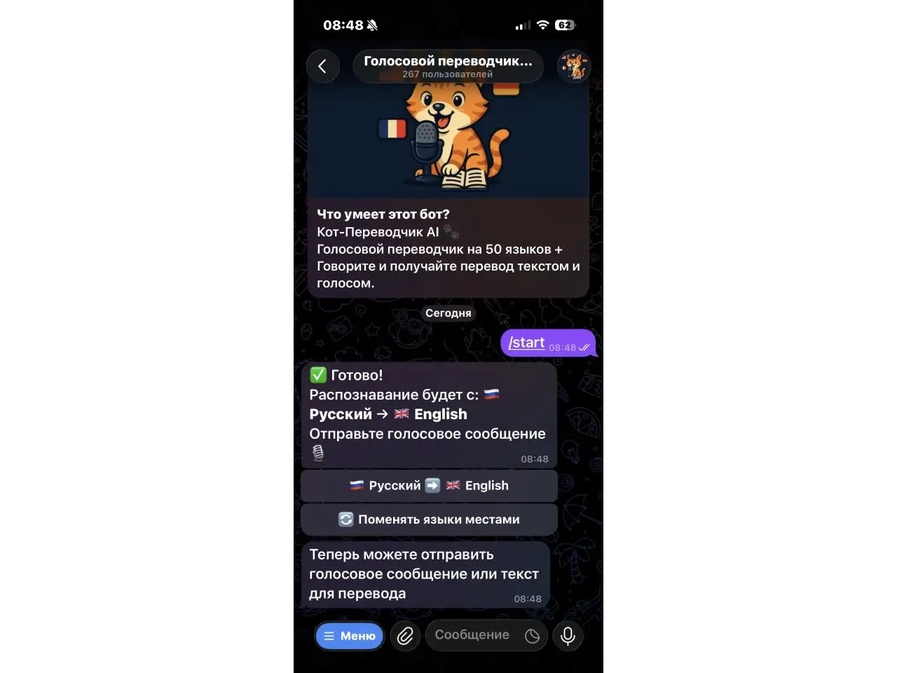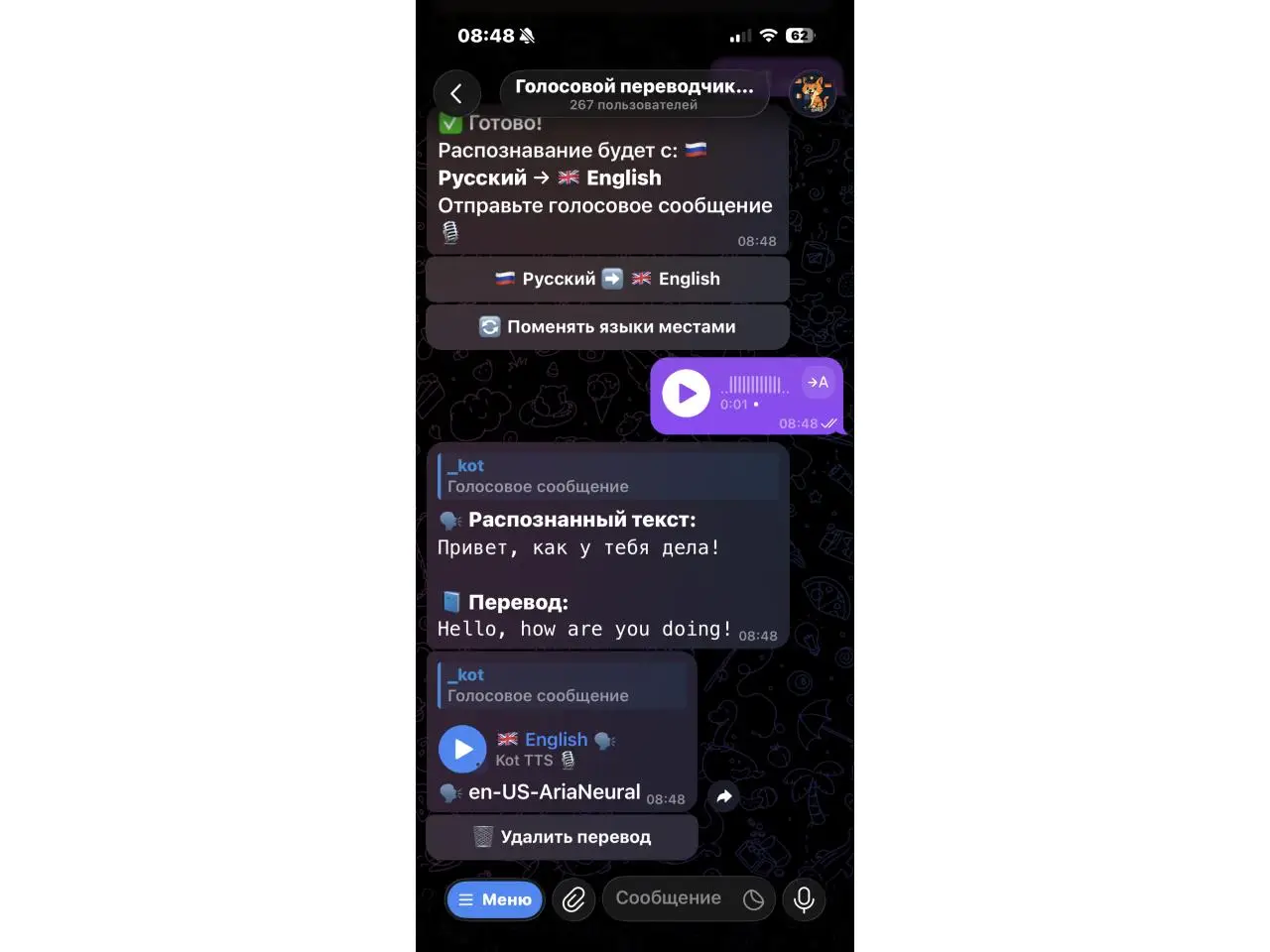 @KotTranslate_bot Голосовой переводчик в Telegram
