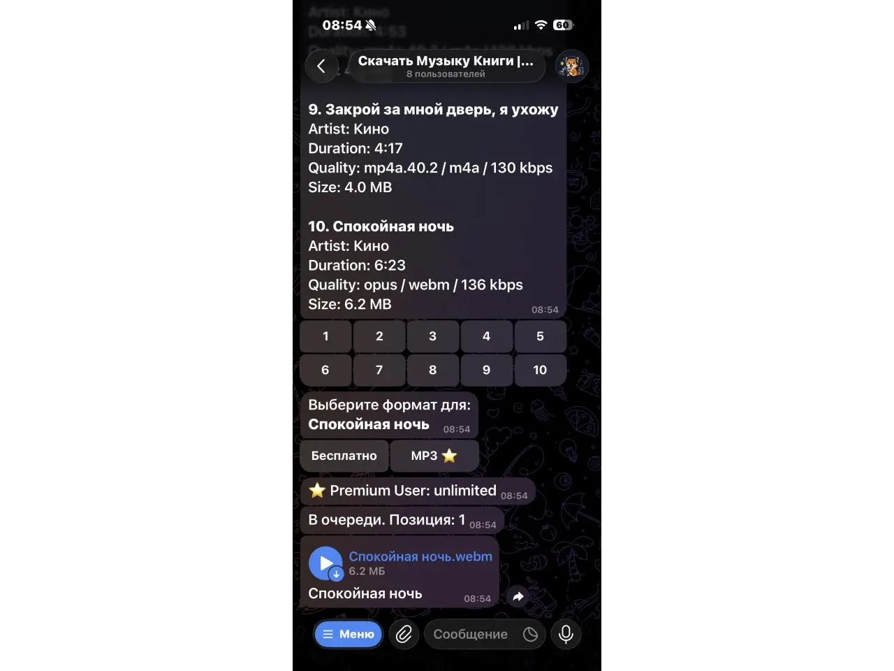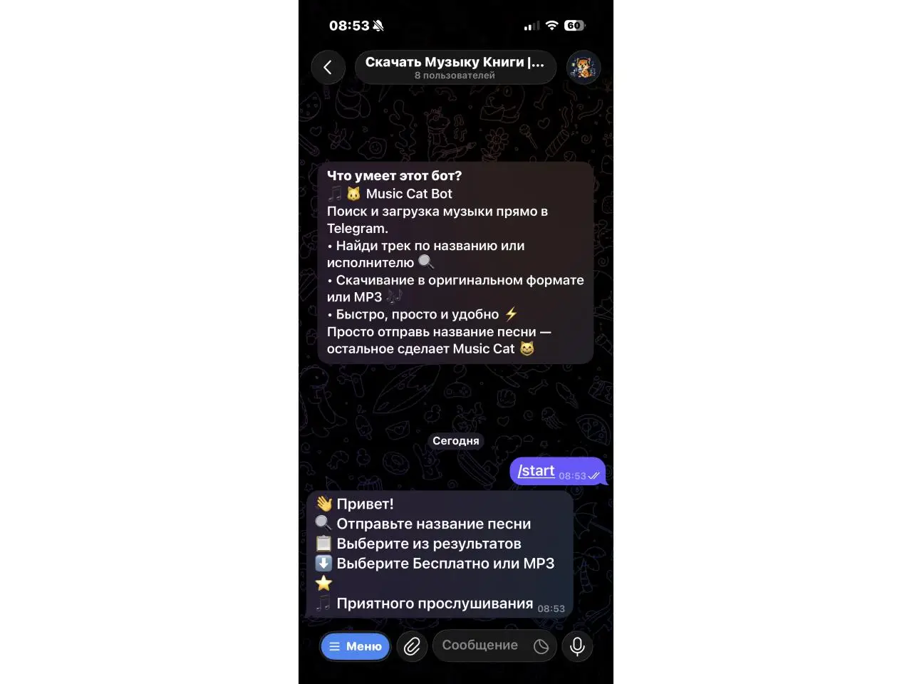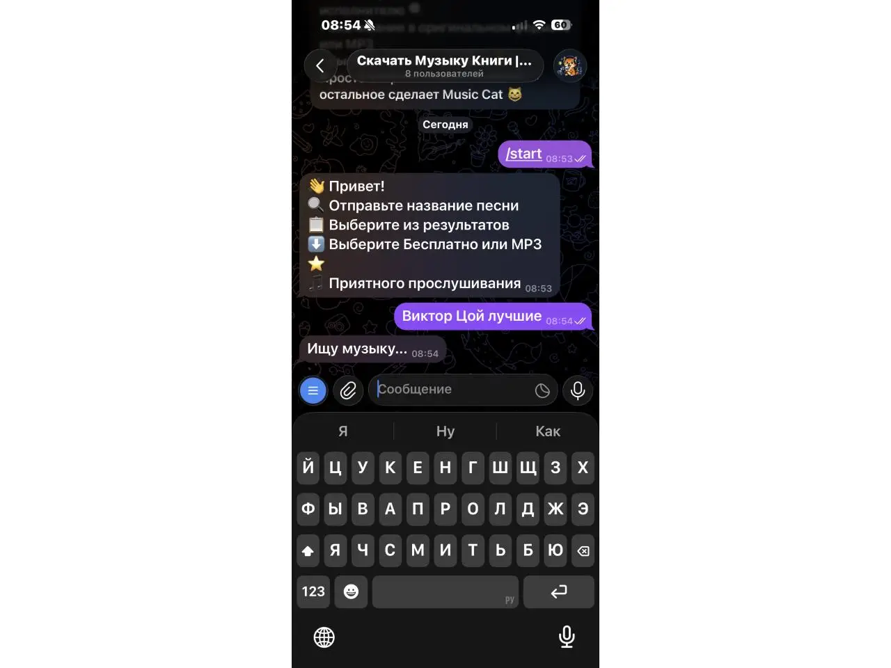 Музыкальный бот для поиска и скачивания треков прямо в Telegram. Возможности: • Поиск музыки по названию или исполнителю • Загрузка треков в оригинальном формате • Скачивание в MP3 • Быстрая обработка и высокая скорость загрузки • Работа без сторонних приложений Подходит для сохранения музыки, офлайн-прослушивания и личных коллекций. Просто отправьте название песни или исполнителя — бот най...